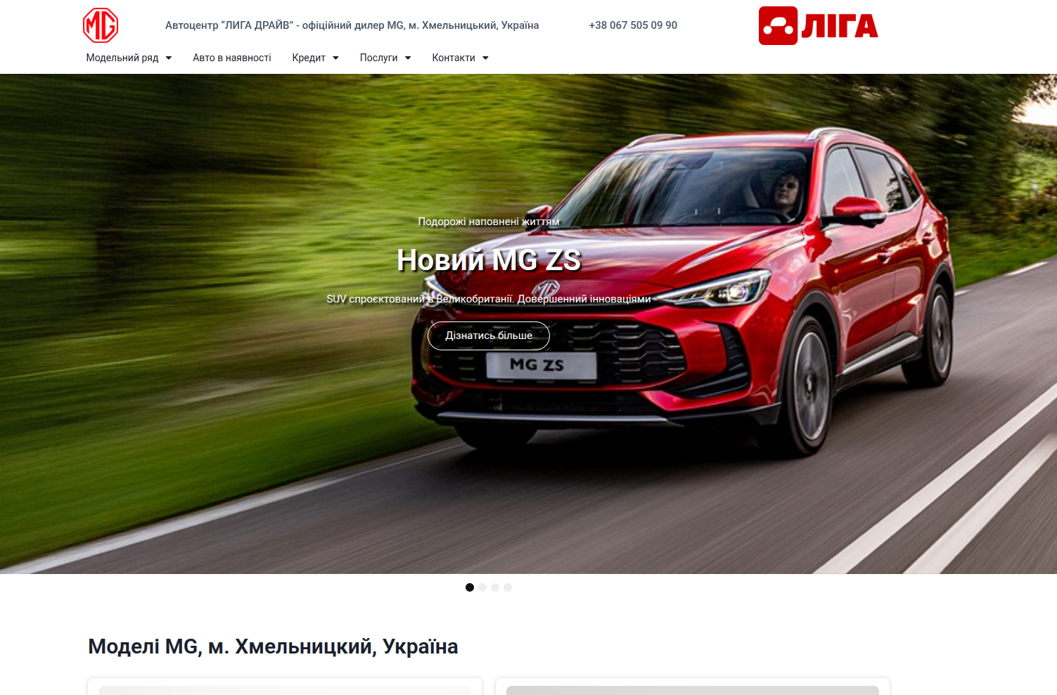 Для офіційного дилерського центру “ЛИГА ДРАЙВ” — MG Хмельницький ми створили сучасний корпоративний сайт, який повністю відображає масштаби та експертність автоцентру. Основна мета проєкту — зробити цифрову платформу таким же зручним, інформативним і технологічним простором, як і сам дилерський центр.