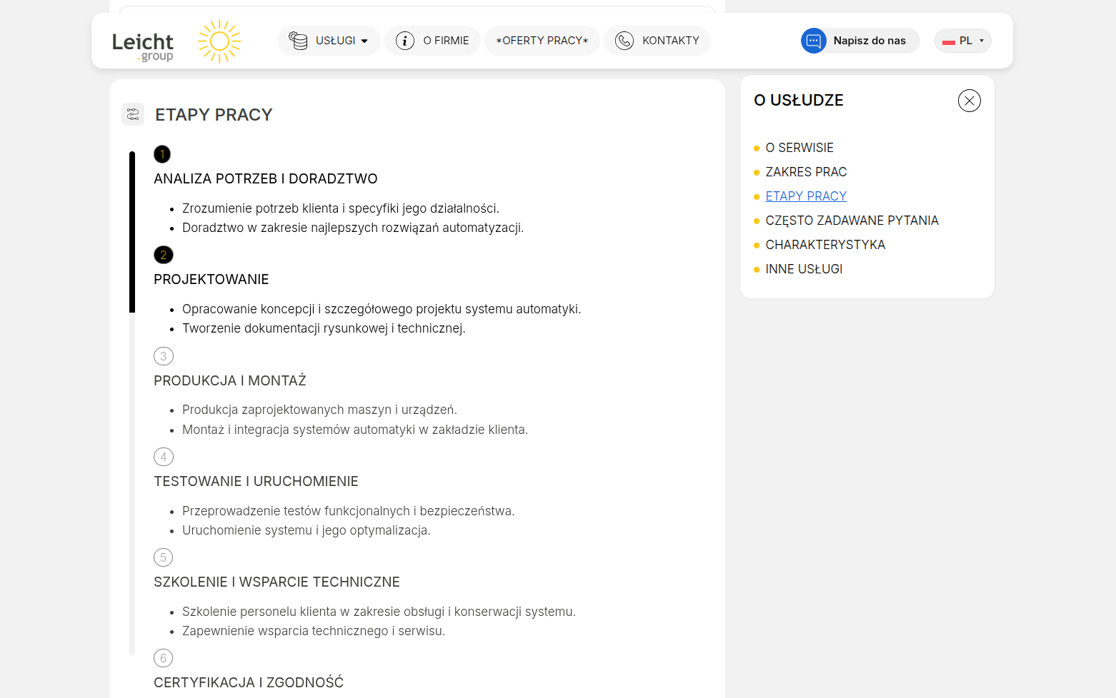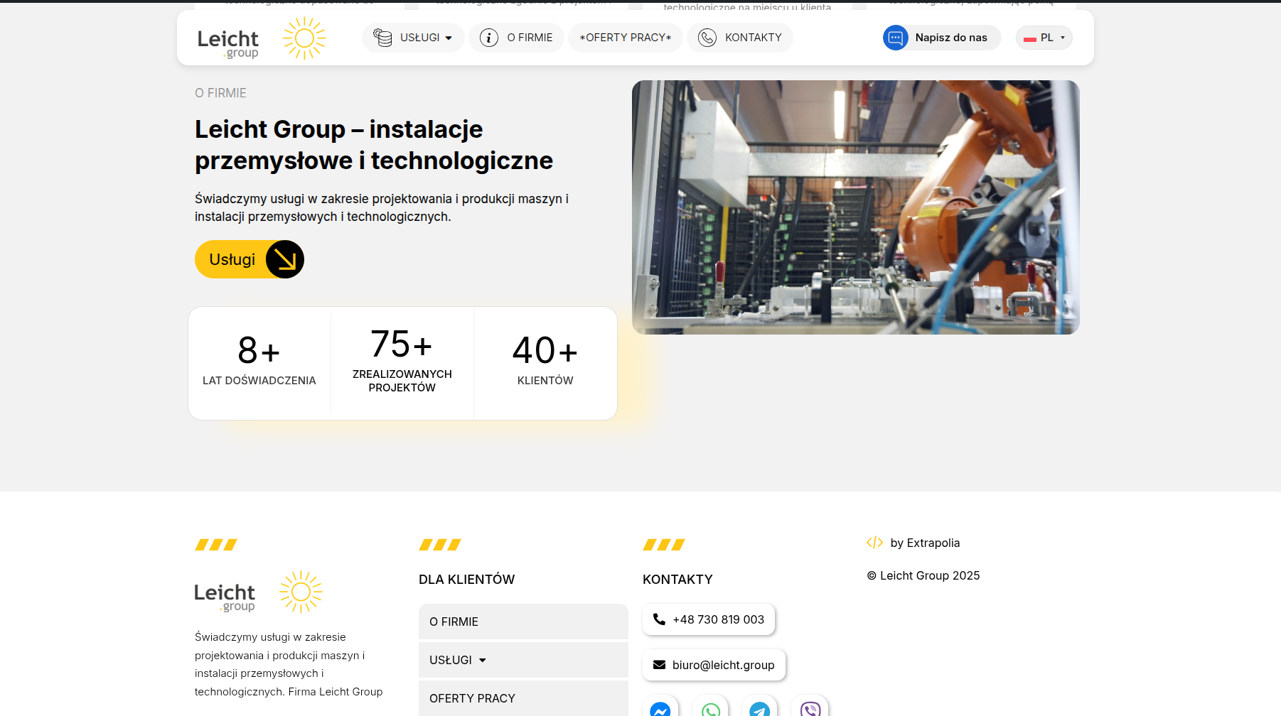 Ми створили корпоративний вебсайт для Leicht Group, компанії, що спеціалізується на проєктуванні та виробництві промислових і технологічних установок. Основним завданням було розробити презентаційну платформу, яка чітко і структуровано демонструє компетенції компанії, її технологічні можливості та реалізовані інженерні рішення.