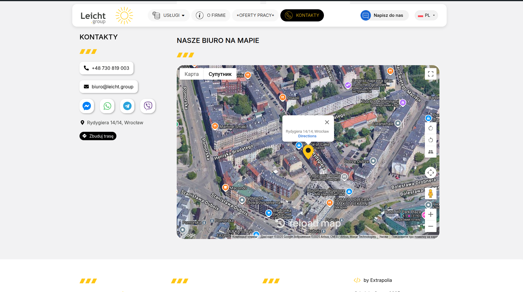Головною метою проєкту для Leicht Group було створення корпоративного сайту, який точно та професійно передає технічну експертизу компанії й допомагає потенційним клієнтам швидко розібратися у напрямках діяльності.